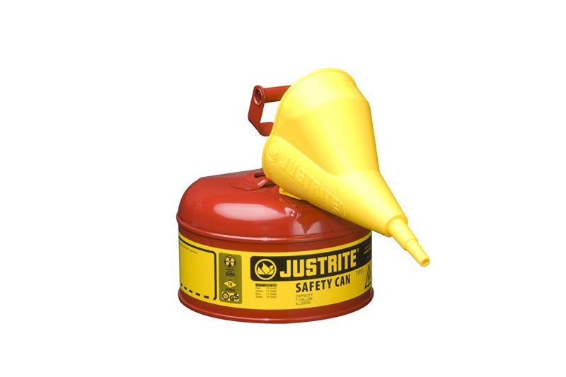 Cada container de segurança da Justrite é equipado com um corta-chamas em aço inoxidável que dissipa o calor para interromper a ignição. Containers com capacidade até 1 litro possuem uma alavanca de liberação do gatilho, enquanto capacidades maiores possuem uma alavanca oscilante para facilitar o transporte de cargas mais pesadas.